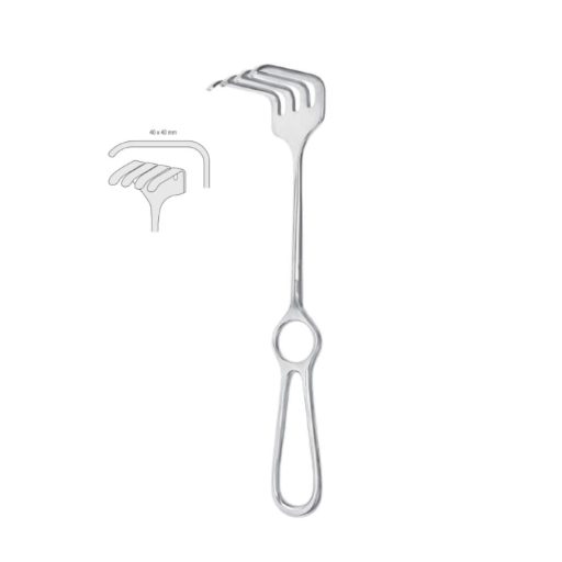 Der Israel-Haken ist ein spezielles chirurgisches Instrument, das zum Greifen und Halten von Gewebe verwendet wird, um eine bessere Visualisierung des operierten Bereichs zu ermöglichen. Zu diesem Zweck ist das Instrument "L"-förmig, so dass der Chirurg große Gewebe leicht zurückziehen kann. Darüber hinaus ist der Haken abgestumpft, um andere anatomische Strukturen nicht zu beschädigen. Der Griff hat Vertiefungen, die das Ziehen von Gewebe in verschiedenen Winkeln ermöglichen, ohne dass die Gefahr des Abrutschens besteht. Die Gesamtlänge des Instruments beträgt 25 cm. Hergestellt aus hochwertigem rostfreiem Stahl mit sehr guten Korrosionsschutzeigenschaften. Wiederholte Sterilisation ist möglich.