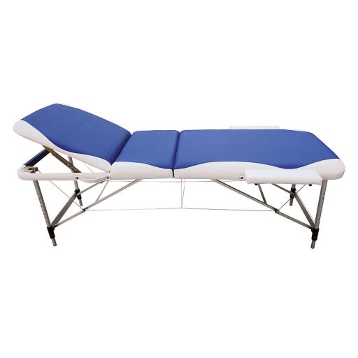 Die hochwertige, tragbare Untersuchungsliege „Sentosa“ ist in vielen attraktiven Farbkombinationen erhältlich. Sie ist faltbar und leicht zu transportieren, was sie ideal für Hausbesuche macht. Die Liege besteht aus einem robusten Aluminiumrahmen, einer höhenverstellbaren Kopfstütze und einer 3-teiligen Liegefläche.