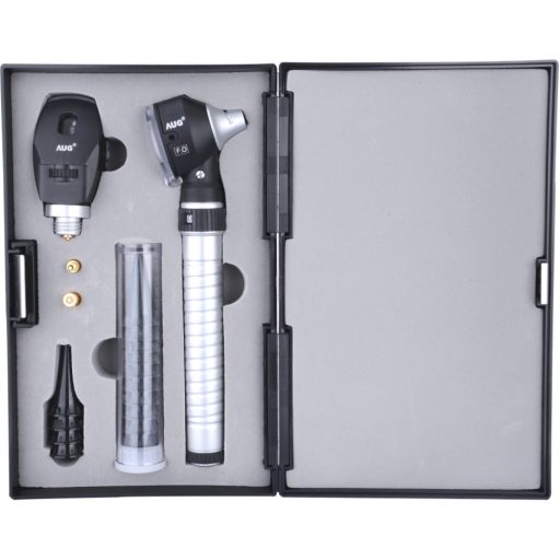 Modernes Otoskop und Ophthalmoskop in einem einzigartigen, kompakten Design. Handlich und leistungsstark mit einer großartigen Kombination aus Rheostat-Lichtsteuerung Griff. Ein neuer Fokus mit dem fortschrittlichen Rheostatgriff verbessert die Effizienz von Untersuchungen und Diagnosen. Konzentriertes helles Licht für eine perfekte Ausleuchtung, ein brillantes Bild und eine genaue Farbwiedergabe. Die AUG-Spezialoptik erzeugt scharfe, klare Bilder des gesamten Untersuchungsbereichs und minimiert Reflexionen. Erhältlich mit 6 verschiedenen Blenden und 2 Farbfiltern. Das Set enthält 1 Otoskopkopf, 1 Ophthalmoskopkopf und 1 Rheostat-Lichtsteuerungsgriff im Hartplastikkoffer mit Ersatzlampen und Einweg-Ohrtrichtern.