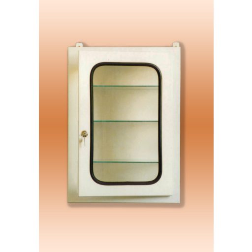 Korpus aus Stahlblech, dessen Oberfläche durch elektrostatische Pulverbeschichtung lackiert ist. Die Regale sind aus Glas. Die Glastür ist in einem Gummibett befestigt und verfügt über ein Sicherheitsschloss. Die Grundfarbe ist weiß, andere Farben sind auf Anfrage erhältlich.