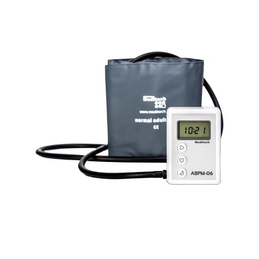 Das ABPM-06 ist ein programmierbares, leises, kleines und leichtes ambulantes Blutdruckmessgerät. Vier AA-Batterien ermöglichen einen Betrieb von 24 oder 48 Stunden. Mit einem Satz Batterien können 300 Messungen durchgeführt werden. Das Gerät kann bis zu 600 Messungen in seinem nichtflüchtigen Speicher für unbegrenzte Zeit speichern. Der Patient kann mit einer Taste am Gerät eine Notfallmessung auslösen, Ereignisse markieren und einen speziellen Tag/Nacht-Alarm einstellen. Der ABPM-06 erkennt automatisch Standard-, große und kleine Meditech-Manschetten. Mit der Spannungsanzeige können Sie den Zustand der Batterien überprüfen. Das sehr leise Gerät verfügt außerdem über eine mehrstufige Patientensicherheitsfunktion.