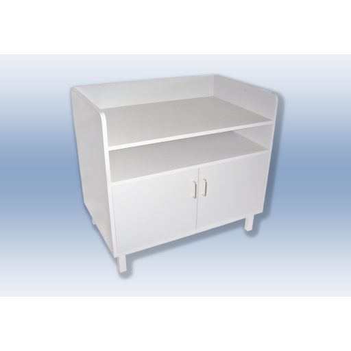 Schrankkorpus aus Möbelplatte, der auf Metallbeinen steht. Die Schaumstoffmatratze, die auf dem Dach des Schranks platziert ist, besteht aus Kunstleder. An drei Seiten des Liegeteils befindet sich eine 100 mm hohe Galerie. Auf Wunsch können die Tür(en) mit einem Schloss ausgestattet werden. Die Grundfarbe ist weiß, oder Sie können entsprechend den Farboptionen von Interspan wählen.