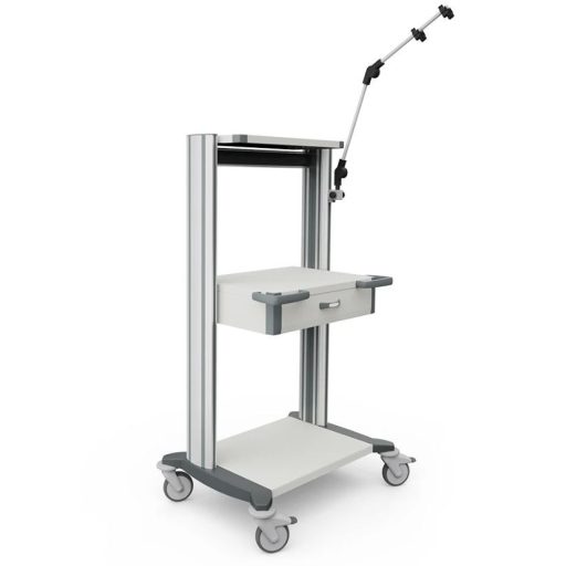 Formschönes und sicheres Fahrgestell, geräumige 2-Säulen-Aluminium-Trägerprofile mit integriertem Kanal für perfekte Kabelführung. Langlebige und hygienische Metallpaneele mit abgerundeten Dekorecken, Soft-Schubladen mit Selbsteinzug inklusive praktischem Griff sowie komfortablen Eck-Schiebegriffen.