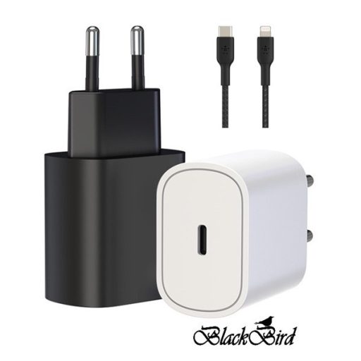 BLACKBIRD Hálózati Adapter T145 25W + Lightning kábel 1m, Fekete