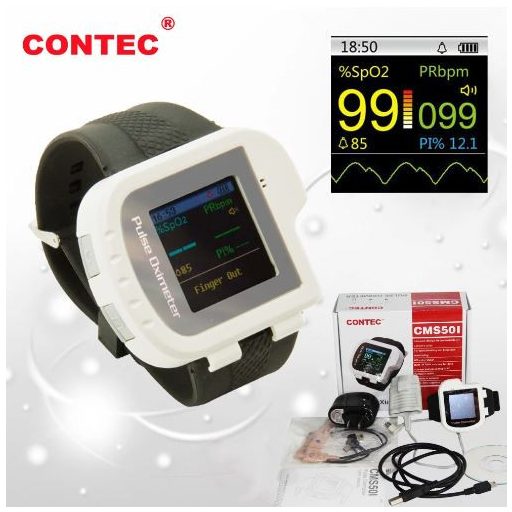 The Contec CMS50L is a simple to use and easy to carry pulse oximeter device that can be placed on the wrist for comfortable wear and easy measurements. The device has a built-in sensor that non-invasively measures oxygen levels and heart rate.