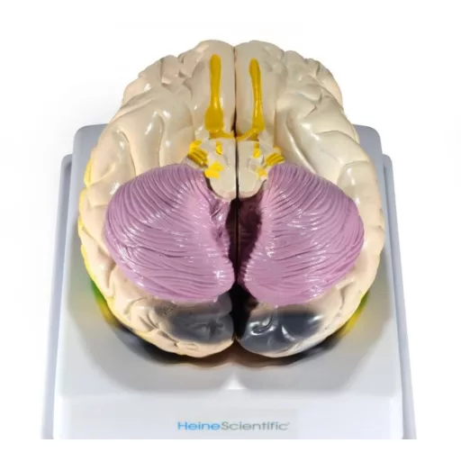 The brain model with functional areas enables a separate view of both hemispheres of the brain as well as the internal structures. The different functional areas are depicted in different colours so that they can be easily demarcated and visualized. The model is made of stable and environmentally friendly PVC and comes with a plastic base.