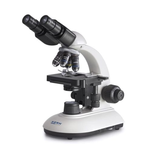 The Kern binocular microscope is a high quality binocular microscope with a 4-slot lens rotator equipped with a long-life, dimmable 3 W LED illumination. The height of the fully equipped cross stage can be adjusted on both sides using the coarse and fine focus knob. The pattern can be slid using the coaxial knob.