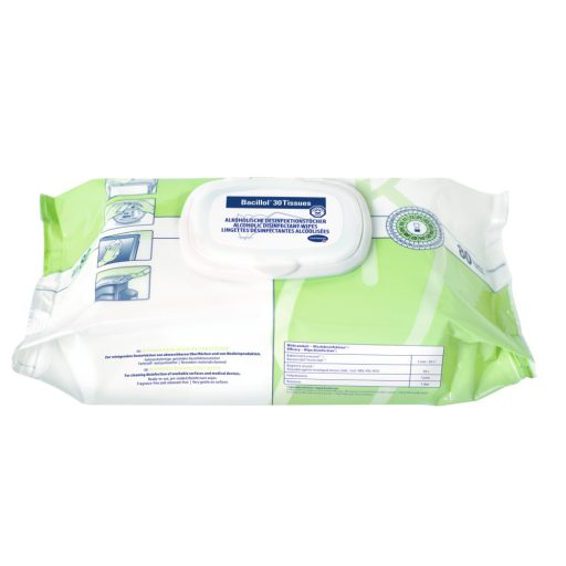 Bacillol 30 Tissues is excellent for fast-acting disinfection of sensitive, washable surfaces, e.g. disinfection of medical devices, sensitive synthetic surfaces e.g. leatherette, Makrolon, acrylic glass or polysulfone, hospital and specialist work surfaces, surfaces requiring fast contact times, hard-to-reach surfaces such as shut-off valves, wires, computers, laptop monitors and keyboards or solariums.