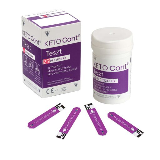 The KETO Cont® Test is a test strip for the quantitative measurement of ß-ketone levels in fresh capillary blood. It can only be used with the KETO CONT® KETONE MEASURING KIT! The test strips can be used by diabetic patients to determine their own ketone levels and by healthcare professionals for professional testing.