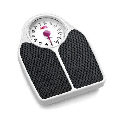 These robust mechanical personal scales from ADE are equipped with an antislip weighing mat to provide stability. Thanks to the high load capacity of 150 kg, normal weight and slightly overweight persons can easily be weighed. The mechanical personal scales have an extra large dial, which is easy to read via the large red pointer.