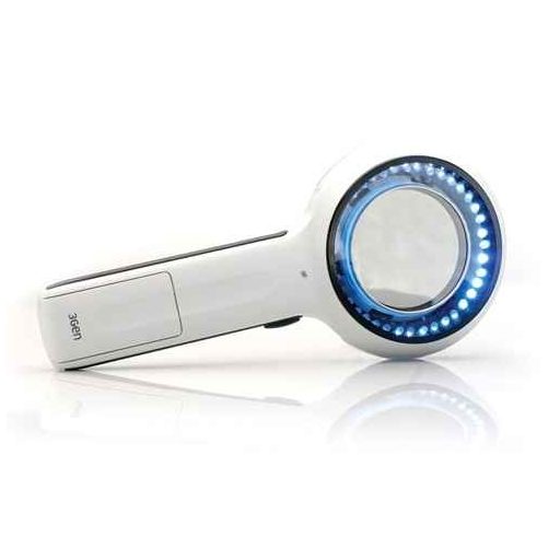 High-quality optics with 75 mm lens diameter provide 2x magnification, excellent colour correction and reduced image distortion for accurate skin viewing. The examination loupe is powered by 4 AA batteries, which can be used for at least 250 examinations of 30 seconds each.