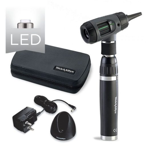 The MacroView™ Prestige™ LED Otoscope Set from Welch Allyn is a high-quality medical instrument designed for precise ear canal examinations. With the 3.5V SureColor™ LED Otoscope Set, you get an almost complete view of the tympanic membrane, significantly enhancing diagnostic accuracy.