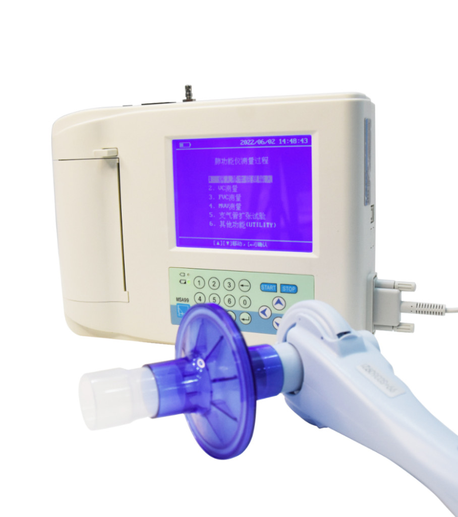 The breathing time is 25 seconds for FVC measurement, 50 seconds for VC measurement and 12 seconds for MVV measurement. The device is compact and flexible, ensuring good coordination between the device and the patient.