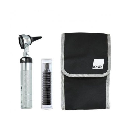 The Eurolight C10 otoscope by KaWe and its 2.5 V vacuum lamp offer a free view of the eardrums and ear canals. It has a high-quality metal casing with a screw connection and a rechargeable battery-operated handle. This is especially characterized by its rechargeability in the KaWe MedCharge 4000 charging station. In addition, the otoscope is equipped with a connection for pneumatic tests and its light intensity can easily be adjusted via a dimmable rheostat.
