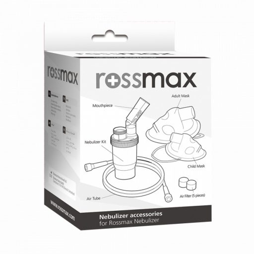 Inhalátor tartozékcsomag ROSSMAX cső, inhaláló edény, szájcsutora, filter, perem, felnőtt és gyerek szájmaszk